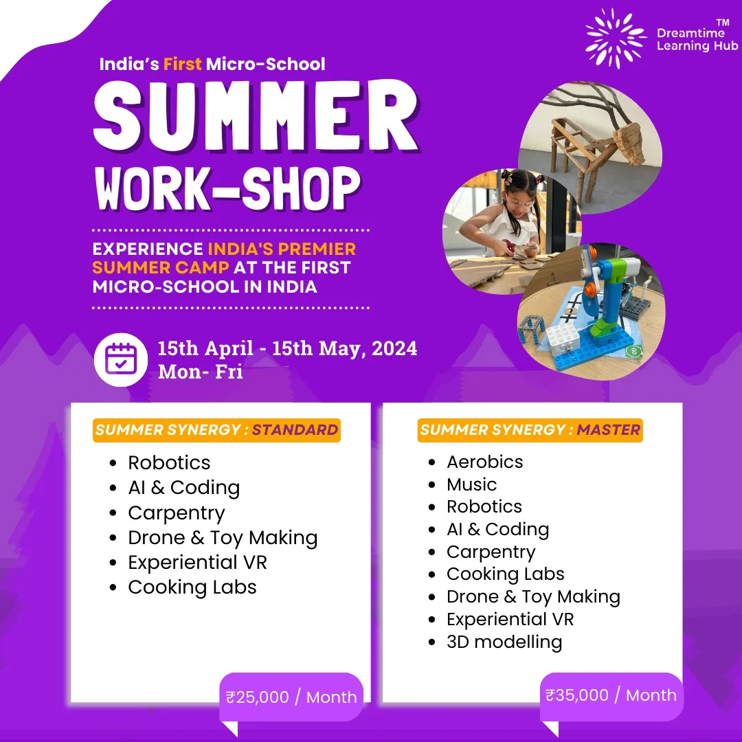 Imagine a summer where your child dives headfirst into the world of robotics, cracks the code of computer programming, or whips up culinary masterpieces. Summer workshop at Dreamtime Learning Hub, Hyderabad is brimming with activities guaranteed to spark curiosity, ignite creativity, and build confidence in young minds.